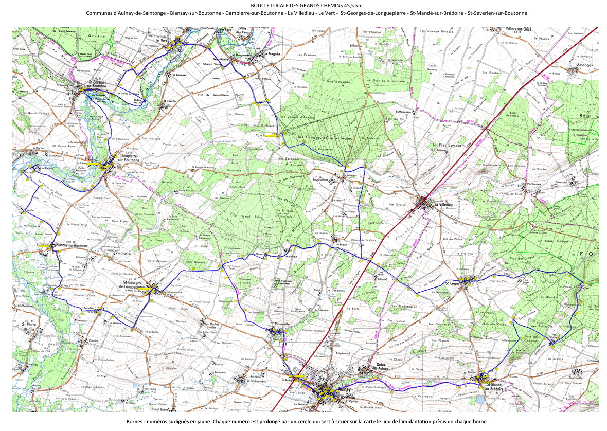 A la demande de certains élus, sensibles au développement touristique, un collectif de 6 communes, comprenant Aulnay de Saintonge, Saint-Georges de Longuepierre, Blanzay sur Boutonne, Dampierre sur Boutonne, La Villedieu et Saint-Mandé sur Brédoire, a créé une boucle vélo de 49kms.